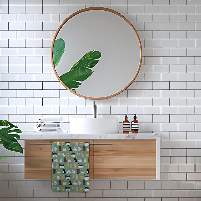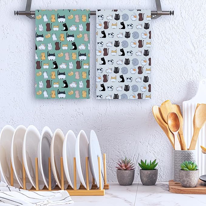 Greatingreat More Cat Towels Funny Kitchen Towels Waffle Soft Cute Kitchen Dish Hand Towels Cat Lovers Absorbent Hostess Decor Bath Towels Housewarming Gift Set of 2