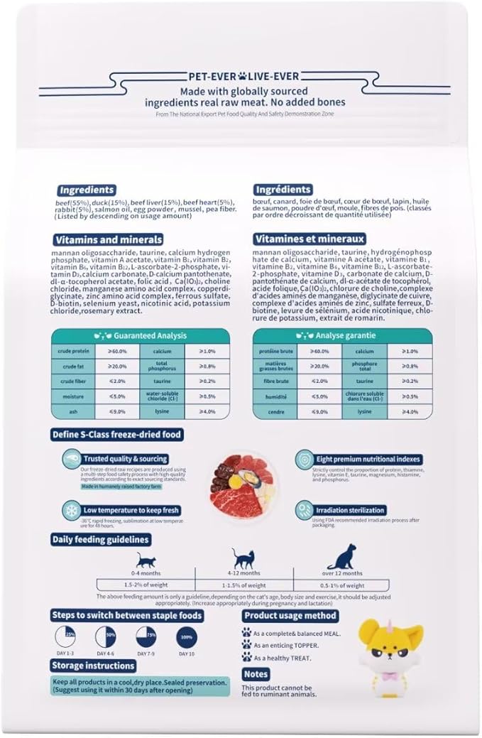 Freeze-Dried Cat Food, 97% Raw Meat 60% High Protein, Grain-Free Cat Food Topper, Health Dry Cat Food (Beef Recipe - 14 Ounce)