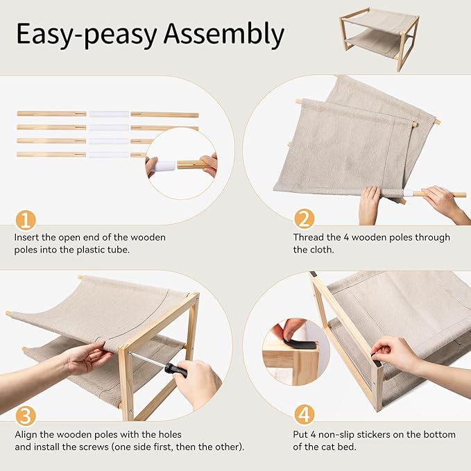 - Easy To Assemble - With its simple construction and intuitive instructions, you can set up this elevated cat bed in just 5 minutes. We provide all the tools needed, no additional tools are required.