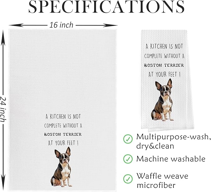 Boston Terrier Dish Towels Set - Decorative Waffle Weave Kitchen Hand Tea Towels, Funny Gift (1624 Inches, Set of 2)