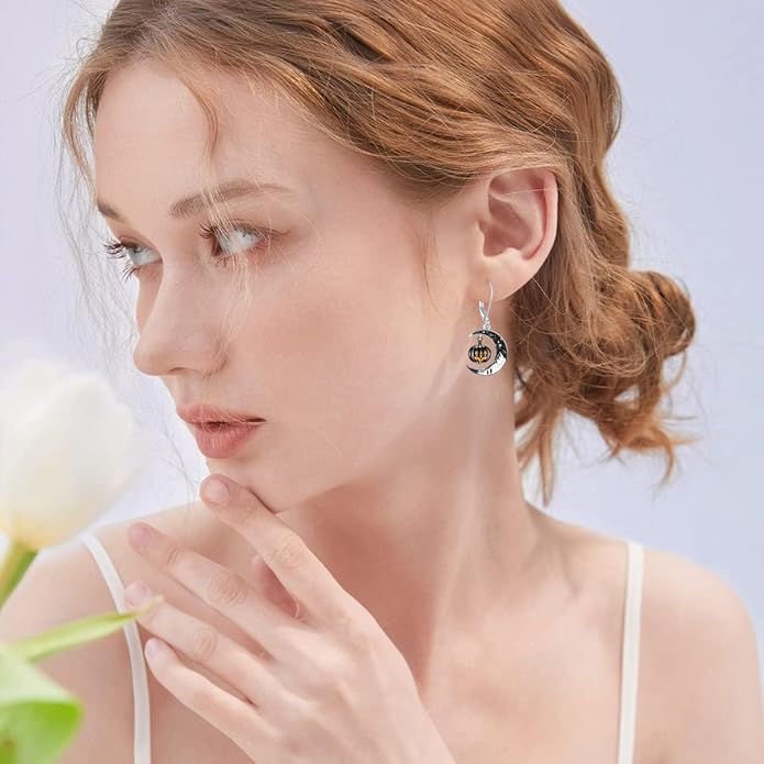 - ♥ Gothic Dark Design ♥ Pumpkin Earrings Jewelry features black pumpkin and Mountain and Moon as the design elements, full of Gothic effect is mysterious and elegant.We incorporate Halloween classic elements-pumpkin, meet the festive atmosphere of Halloween and make party more exciting and fun