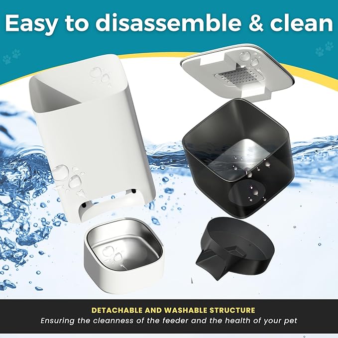 - Durability and Safety in Every Detail: This automatic dog feeder is made with durable ABS and stainless steel, ensuring a sturdy and safe construction. It also features a 3.5L food container and easy-to-clean components, providing convenience and longevity with every use.