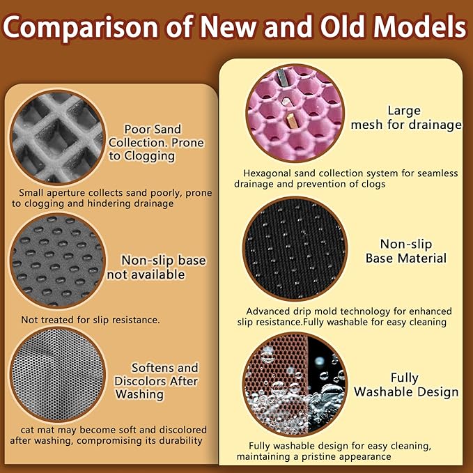 - Effortless Cat Litter Collection: QQchickchicky cat mat includes a premium wooden cat comb. QQchickychicky's innovative double-layer honeycomb design makes litter collection incredibly easy. Simply lift the mat, and all the litter falls through the large holes—no more litter clinging to your feet! This efficient design is perfect for all types of litter and boxes, ensuring a cleaner home environment with minimal effort