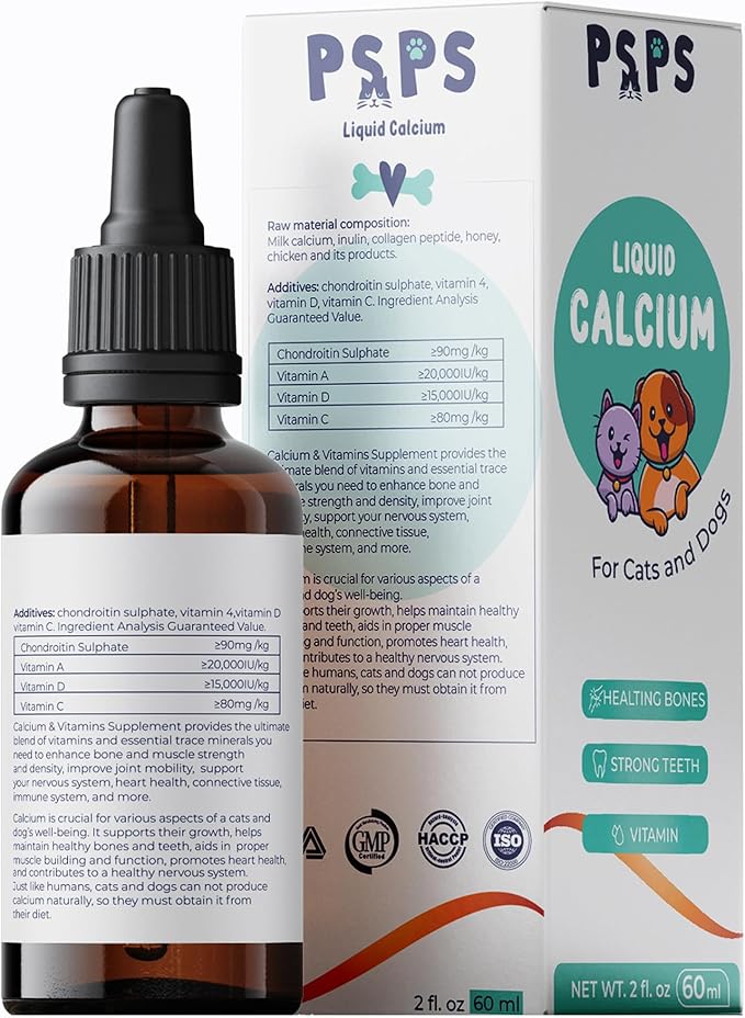 Calcium Liquid Supplement for Dogs & Cats with Added Vitamin A, Vitamin C, Vitamin D – Promotes Strong Bones, Immune Support, and Overall Pet Wellness – 2 Fl. Oz.