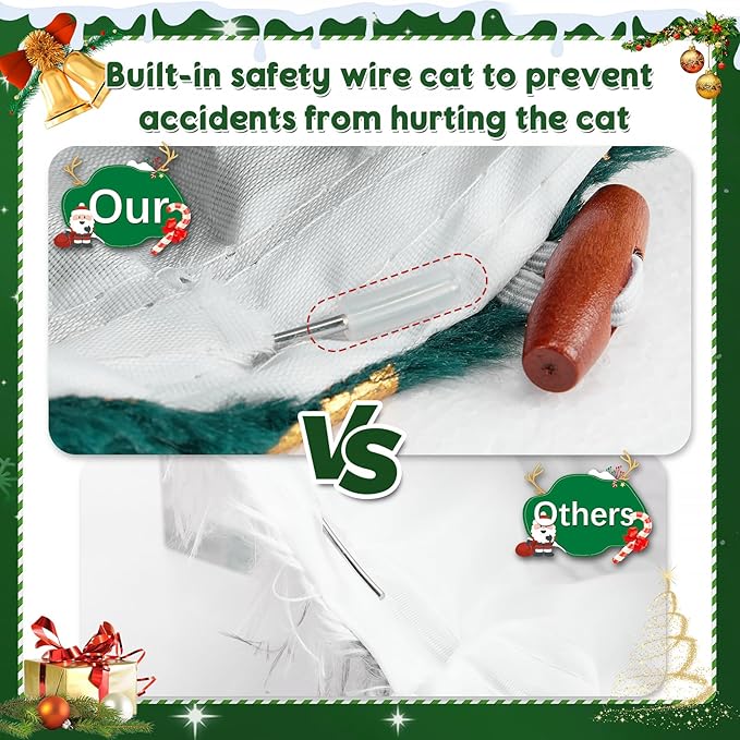 - Comfortable material-the surface of the cat caves for indoor cats is made of soft and cozy fleece material, and the inside is breathable non-woven fabric, the wire interface of the inside support is matched with a plastic cap to prevent the wire from bubbling out and hurting the kittens, so that the kittens can play comfortably and safely.