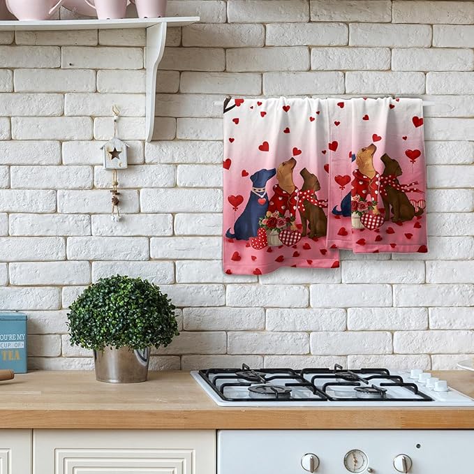 Giwawa Valentine Dog Hand Towels Set of 2 Romantic Love Soft Microfiber Absorbent Fingertip Face Towels for Bathroom Home Kitchen Hotel Spa