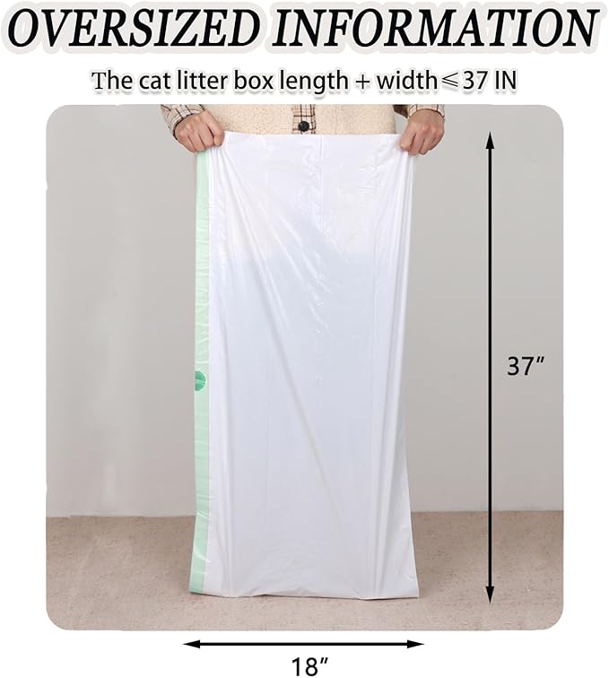 - JUMBO CAPACITY : Our cat litter bag is large enough at 37 "x18" without worrying about the size of the litter box. It is suitable for the vast majority of litter boxes on the market and can hold a large amount of dirty things.