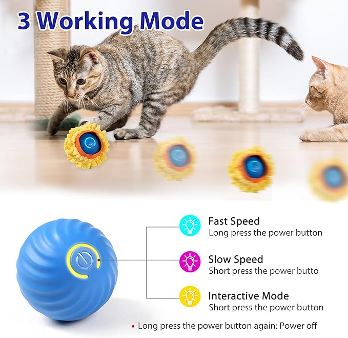 - Solo Moving Ball Toy:This interactive cat toy can also be played on carpet or hard floors, running like a small living animal,stimulating your cat's instinct to chase and hunt. Provides more fun for indoor bored cats of all ages