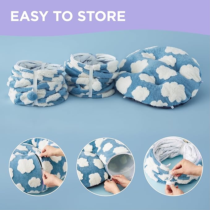 Lesure Large Cat Tunnel Bed for Indoor Cats - Cute Cat Donut Tunnel with Washable Circle Cushion, Round Pet Play Tunnel Toy for Kitten/Puppy/Rabbit,Blue