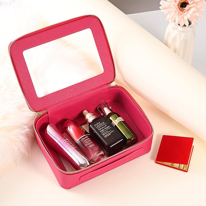 - ❤【TSA-APPROVED COMPANION】This makeup travel case is perfect for traveling as it is TSA compliant. The transparent panels help you keep track of everything you've packed. Our cute zipper pouch allows you to travel in style and with ease either at that TSA checkpoint or in of your destination bathroom.Reduce mess with our transparent train case.