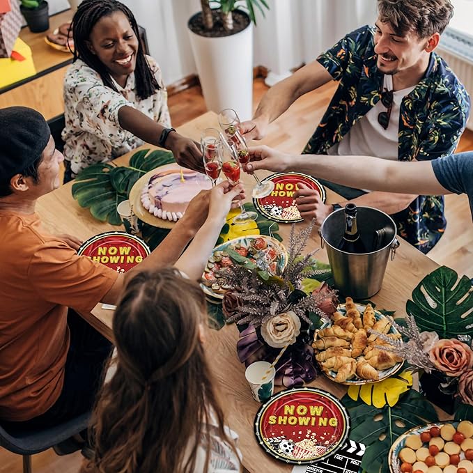 - 【Convenience & Clean-Up】These movie night-themed party sets are the perfect addition to your holiday party decorations. One of the main benefits of using disposable paper plates is the convenience they offer. There’s no need to worry about washing dishes or dealing with a pile of dirty tableware. Simply gather the plates and dispose of them. After the party, you can spend more time with your family or friends and less time cleaning up.