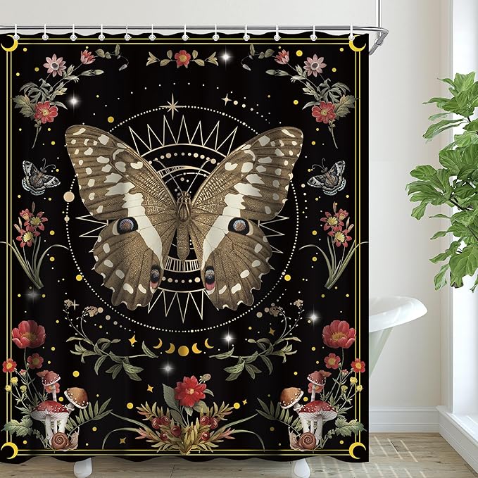 - Package Includes: 1 Black witchy moth shower curtain & 12 hooks (size 153*183cm, 12 holes/hooks).