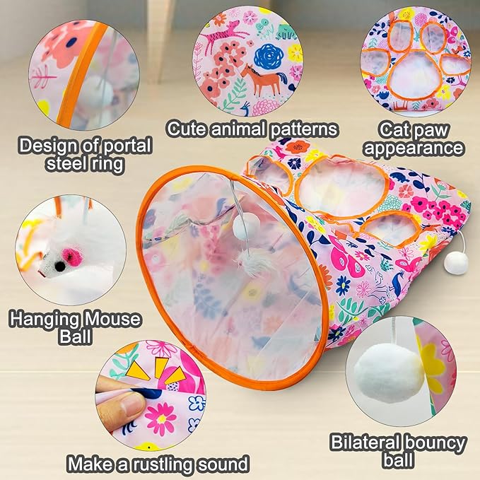 - Crinkly Sound&Hide Holes: Most cats love the crinkle sound. Our cat crinkle toys are made from premium polyester taffeta, which makes a crinkly sound when touched. Cats shuttle the cat tube toy again and again. Your furniture won't get bitten anymore because your cat is busy playing with this toy