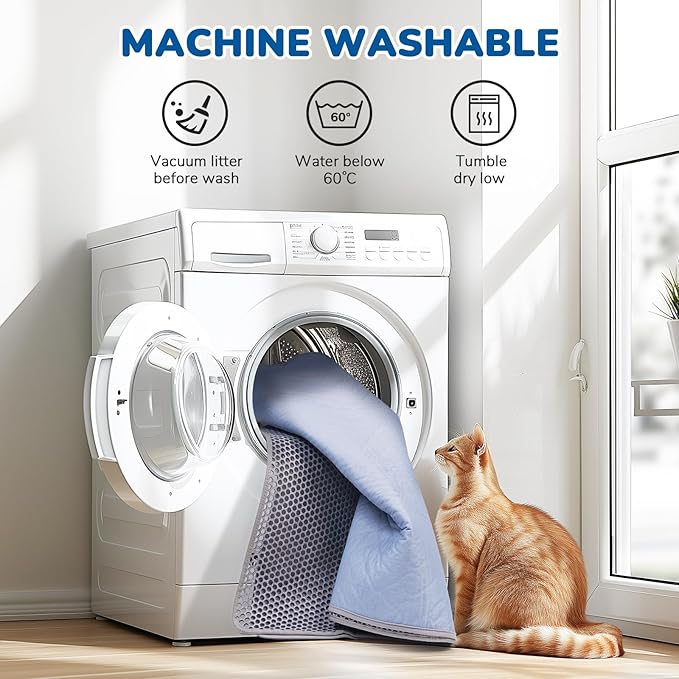 - Machine Wahable and Easy to Clean: Made of felt and fabric. After vacuuming the cat litter, just put the mat in the washing machine, freeing your hands, avoiding touch with urine and litter, saving time and energy. 3-side opening design makes cleanup a lot easier. No need to get dirty hands to dump the litter like an envelope-opening cat litter mat and button-attached cat litter mat. Just lift the upper layer and clean it with a broom of vacuum