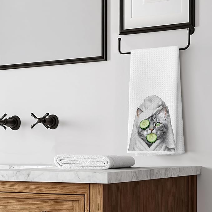 Funny Cat Hand Towels for Bathroom Decor, Cute Cat Mom Lady Lovers Gifts, Funny Kitchen Towels, Kids Bathroom Hand Towels,16x24 Inches