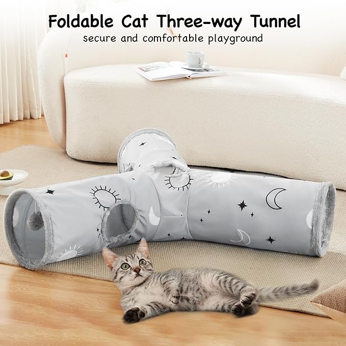 - Best Ways to Play: Our large cat tunnel with 3 spacious tunnels, peephole & beall toy, this popular cat toy gives your large cats more ways to have fun. Provides hours of exercise & self-amusement.