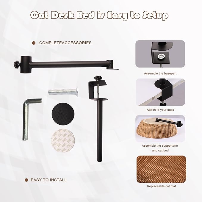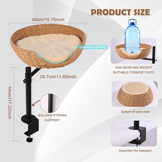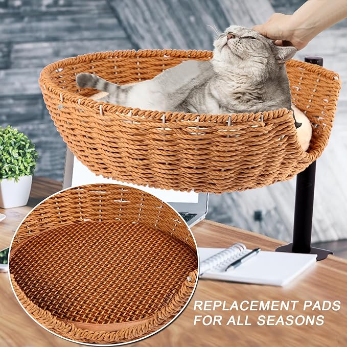 - Easy to Clean Cat Mat: The cat bed desk comes with two mats, suitable for different seasons. The winter plush mat is soft and warm, providing a warm nest for cats in cold seasons; the summer mat is breathable, allowing cats to rest comfortably in hot summer. And the mat is easy to change and wash, always keeping the cat bed clean and hygienic.
