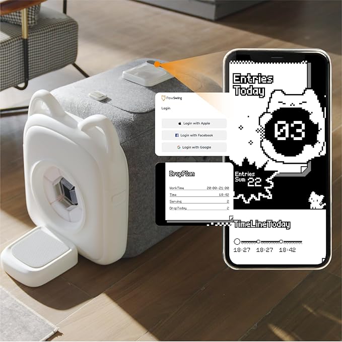 - Scan the QR Code to Access Cat Entry Data: The treat dispenser base is equipped with sensors that track each cat’s entry and record grooming frequency, giving you easy access to detailed statistics.