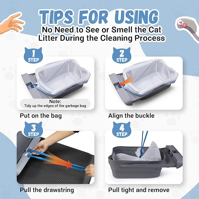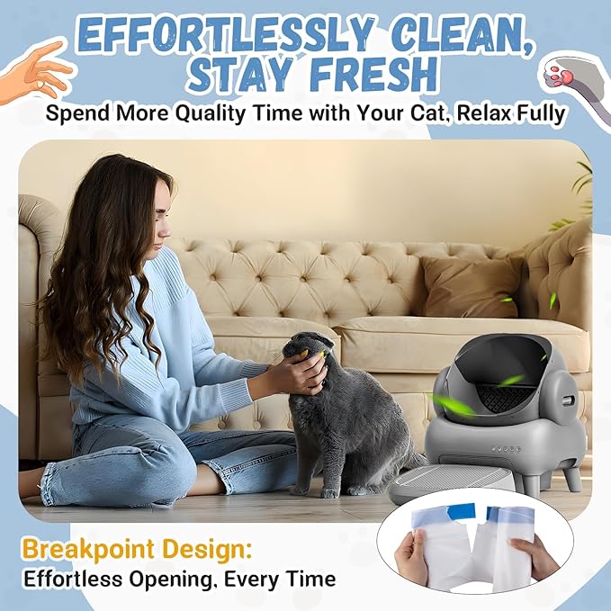 - SIMPLE AND EFFICIENT TO USE: These self cleaning litter box bags are incredibly easy to install and empty. A cost-effective alternative to expensive official replacements, their leak-proof dual-drawstring design eliminates the frustrations of poorly designed bags. Just grab, tie, and dispose—keeping your home clean has never been so easy