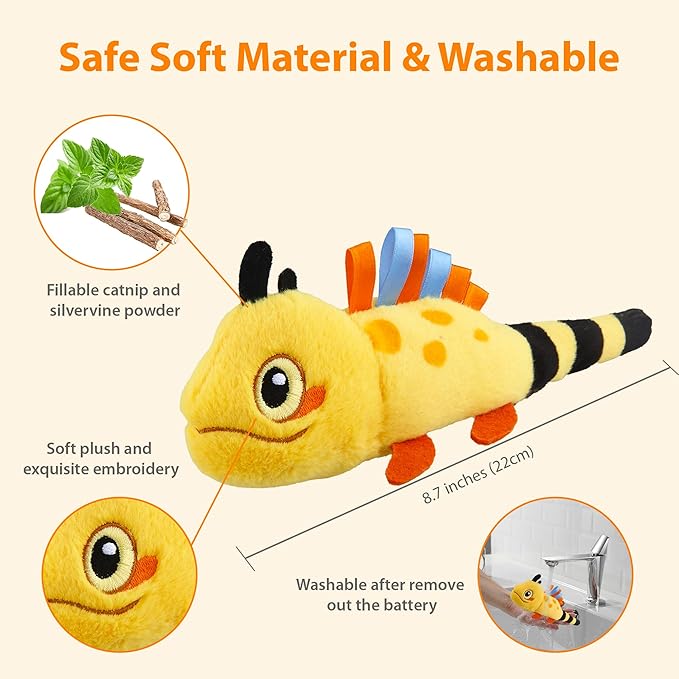 - MENTAL & PHYSICAL STIMULATION: All our cats need mental stimulation! The cats could relieve boredom and loneliness, and increase exercise. The flappy cat toy lizard moves in a wiggling way, intriguing your cats to kick and play by itself: they would feel like had caught a real lizard. The catnip toys are appropriate cat birthday toys or cat Festival Christmas presents