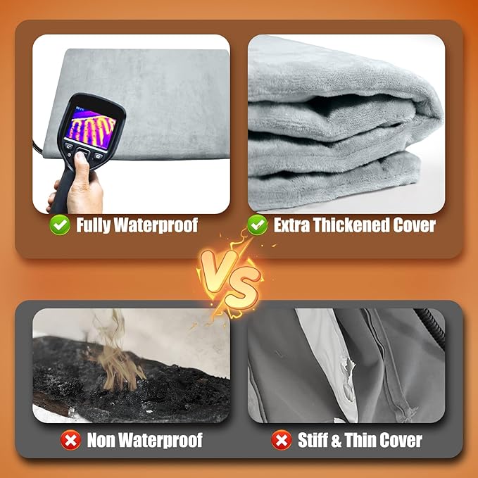 - 【Unique Heating Pad Safety Design】: In order to prevent dogs from biting the wire and getting electrocuted, the wire is wrapped by spiral chewy cover. 7-layer protective structure with U L-certified heating wire protect pets from burns. Soft PVC envelope with waterproof and flame-retardant function. Built-in intelligent temperature sensor in the heating pad to prevent overheating to protect pets. Don’t let your pets lay on the pet heating pad without a plush cover.