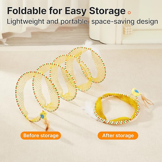 Potaroma Cat Tunnel Toy, Self Play Spiral Cat Play Kitten Tunnel Toy, Collapsible Tunnel Toy for Indoor Cats with Feather and Bell, 18 Inches Unfolded