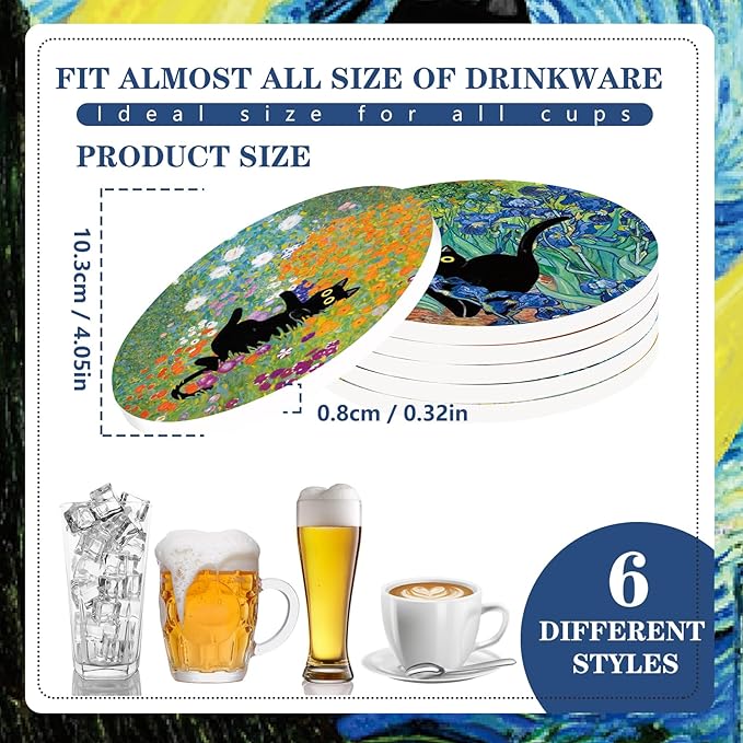 - CUTE DESIGN: Our coasters are patterned with paintings of cute black cats and pretty flowers, which will be the perfect complement to your party and everyday table decor