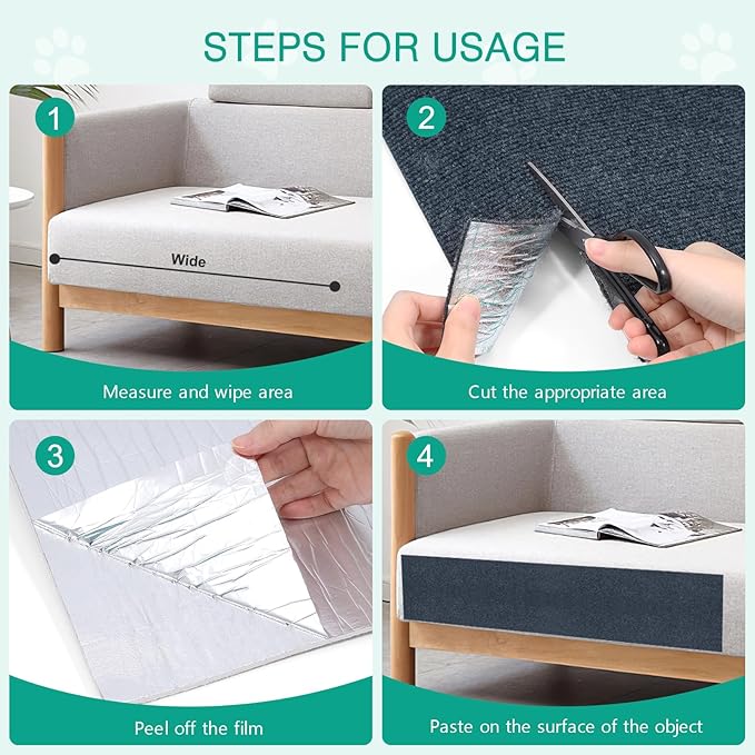 - Versatile Application: Size: 78.7 x 15.7 inches. Suitable for use on cat trees, wooden cat stands, shelves, sofas, or wall-mounted furniture steps, and other surface carpet replacements.