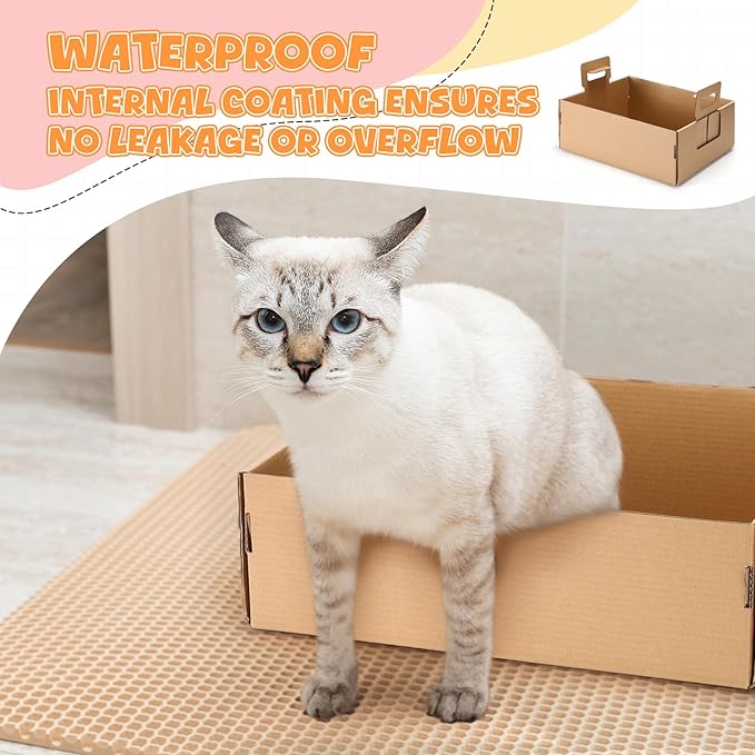 - Reliable Material: the disposable cat litter boxes are made of quality cardboard pulp with special coating, leakproof, tear proof, sturdy and reliable, they will not deform even when filled with heavy cat litter