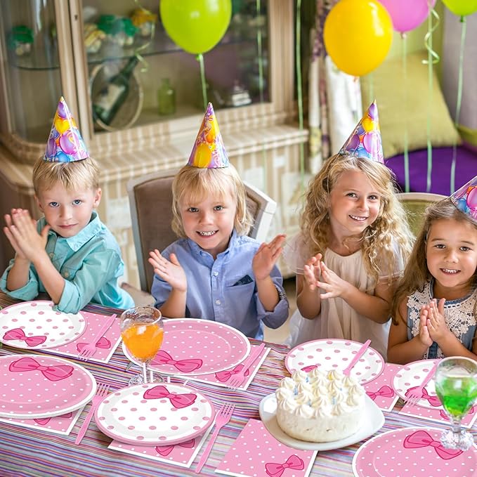 - Adorable pink cat design: These charming pink cat paper plates feature delightful pink bows and playful pink-and-white polka dot patterns. Suitable for creating a sweet and fun atmosphere, the cute cat birthday plates and napkins are ideal for any celebration hosted by a pink cat enthusiast.