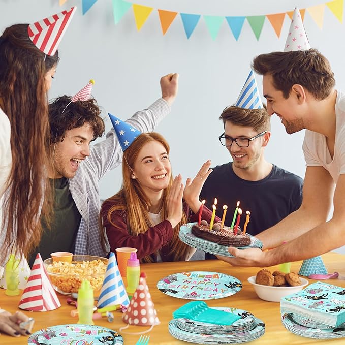 - Quality Material: the cat party paper plates are made of quality paper, safe, and can be in direct contact with food; The cat birthday party lunch napkins are soft and highly absorbent, giving you a good dining experience; The forks are made of plastic, strong and sturdy, and can handle a variety of food without bending or breaking