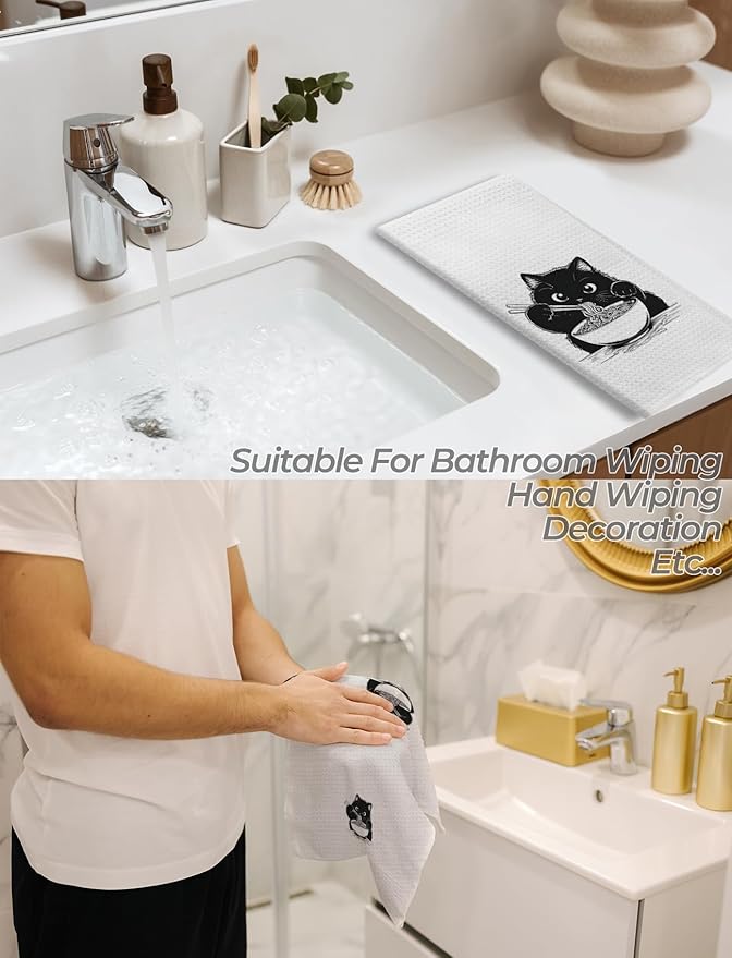 Black Cat Kitchen Towels, Funny Noodle Cat Dish Towels for Kitchen, Cat Hand Towels, Cat Towels for Cat Lovers, Black Cat Gifts, Cat Lover Gifts, Cat Mom Gifts, Cat Lady Gifts, 16x24 Inch