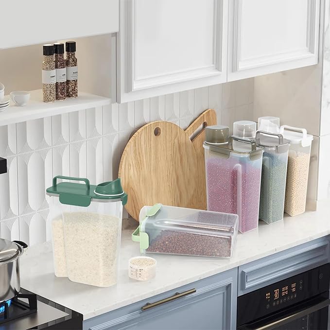 - CAPACITY:our Pet dry food storage containers , cat food storage container combination capacity is 14 LBS, and can hold approximately 10-14 pounds of pet food and rice,Depends on the size of the food。It also works well with regular kitchen food,Such as rice,flour,cereal,beans,nuts,snacks or whatever you like。