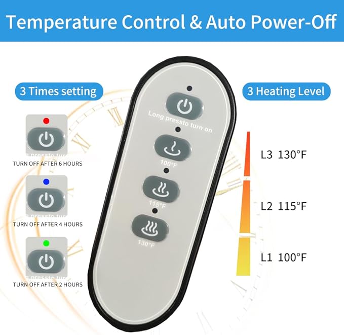 - 【Temperature Controller】Controlling the temperature of electric cat heating pad with temperature controller, it can adjust the temperature easily with 3 temperature settings (38℃/100℉~55℃/130℉) and 3 timer function provide auto shut-off range (2H/4H/6H), conserve energy and prevent burns caused by excessive heating,to accommodate your pets. The Electric Heating pet beds for cat keeps pet steady warm at winter night time.