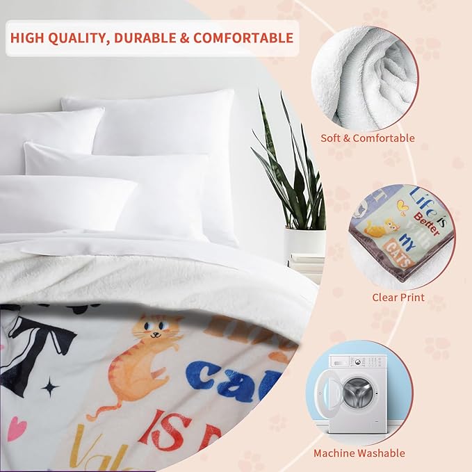 - đLuxuriously Soft and Durable:Crafted from 100% premium flannel, this cat blanket for women is incredibly soft and lightweight, offering a cozy feel thatâs perfect for relaxation. Wrinkle-resistant and fade-resistant, it provides lasting comfort and warmth, making it an ideal choice for cats blankets for cat lovers.