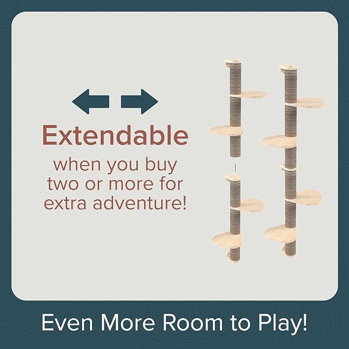 Ascentials - Sunrise Steps - Wall Post w/Climbing Corrugate Shelves, Extendable w/Modern Design, Scratching Surface & Natural Materials