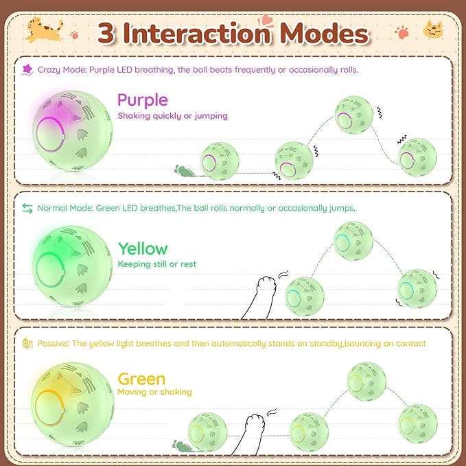 - Suitable for all cats: automatic cat toy ball can make cats have fun, suitable for kittens, small cats, medium cats, big fat cats, it can make big fat cats exercise and help to lose weight