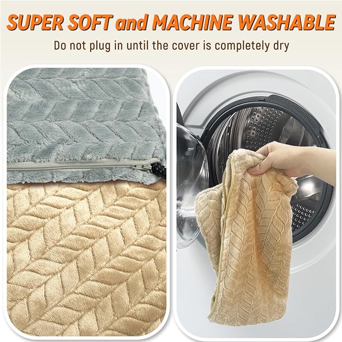 - Chew Resistant and Machine Washable: The heated mat comes with an extension chew resistant cord, made of stainless steel. The dual-resistant cord protection ensures safe use. The super soft cover is removable and machine washable, you can wash the plush cover with machine or hand. Please do not wash the inner pad when it gets dirty after using, you could use a wet towel or wipes to clean it up.
