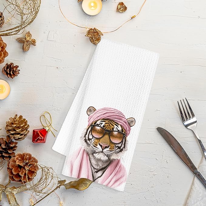Coquette Pink Tiger Hand Towels for Bathroom, Trendy Tiger Bathroom Hand Towels, Coquette Teen Girl Bathroom Decor, Tiger Gifts for Women Tiger Lovers, 16x24 Inch