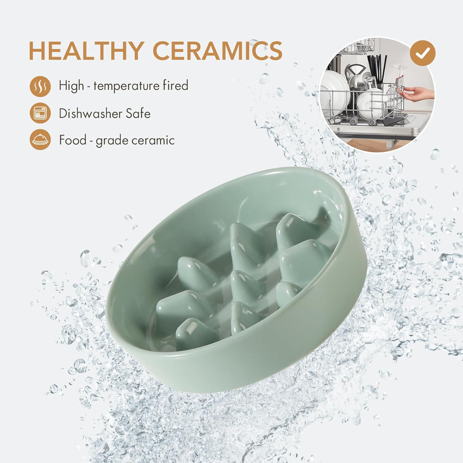 - Stable and Anti-Slip: Ceramic bowl is heavy and stable, and the anti-slip strip at the bowl's bottom can prevent bowl from sliding while your pet eating.