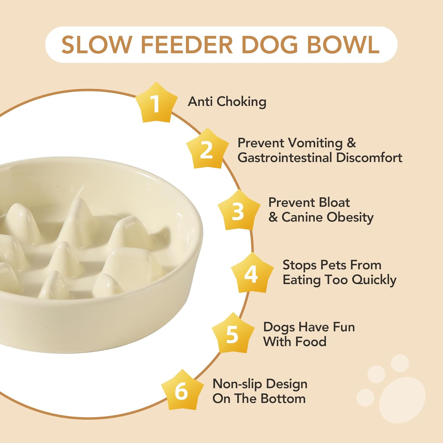 - Pet Friendly: You will receive a 6.1'' slow dish & a 5.1'' bowl, which is suitable for your pet's daily feeding and drinking needs. Havniva Slow Feeder dog bowls feature meal-lengthening ridges to help slow down your dog’s eating time. Unique slow feeding design , promotes healthy slow eating, helping prevent obesity, bloat, regurgitation and overeating.