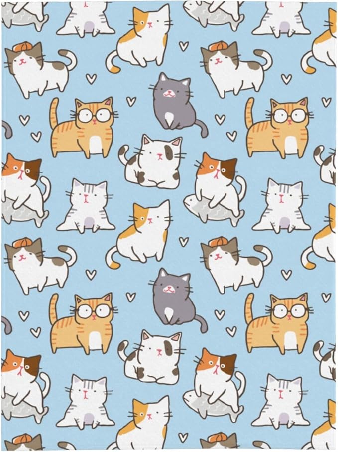 Cute Cats Print Blanket Throw 80"x60", Plush Flannel Blankets with Cats on It, Gifts for Kids Adults Cat Lovers People