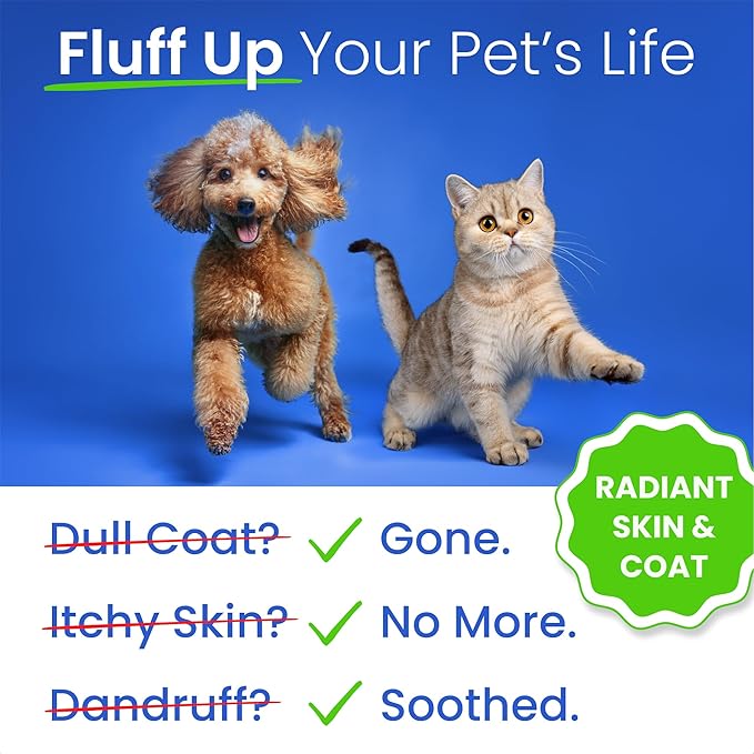 - Skin & Coat + Hip & Joint Supplement Combined - Omega 3 is a vital element to keep your pet active, support healthy hip and joints, brain, heart, immune health. Can be served with regular pet food.