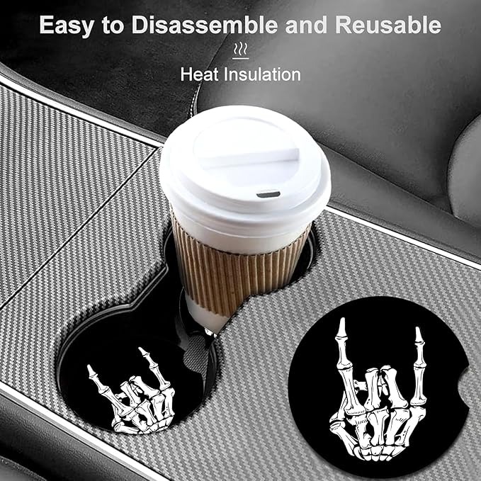 - ✅ Skull Skeleton Hand Design: Upgrade your car's vibe with our Skull Skeleton Hand Car Cup Coasters! Perfect for adding a bold, edgy touch to your ride, these coasters feature unique Skull Skeleton Hand designs that stand out. Durable and stylish, they’re a must-have for anyone looking to personalize their car interior. Keep your cup holders clean and your style on point!