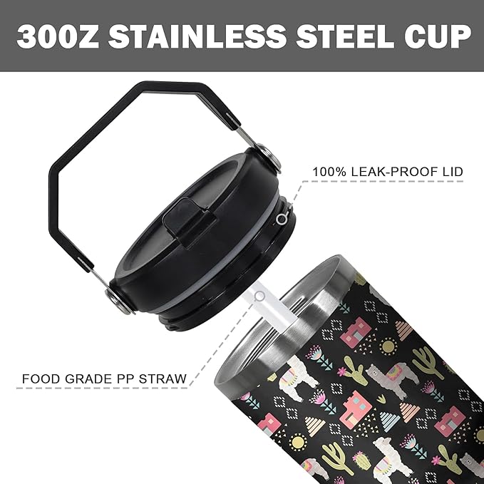 - Llama Water Bottle Sturdy And Durable: this 30 ounce tumbler is made of high-quality stainless steel, it has excellent resistance to drop, pressure and corrosion. The straw and lid of the coffee cups llama are made of safe, high-quality plastic and silicone. 30 ounce tumbler with handle and straw can accompany you through a long time.