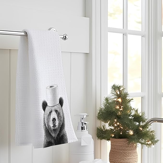 Funny Bear Bathroom Hand Towels, Bears Hand Towels for Bathroom, Bear Bathroom Decor, Bear Gifts for Women Bear Lovers, 16x24 Inch