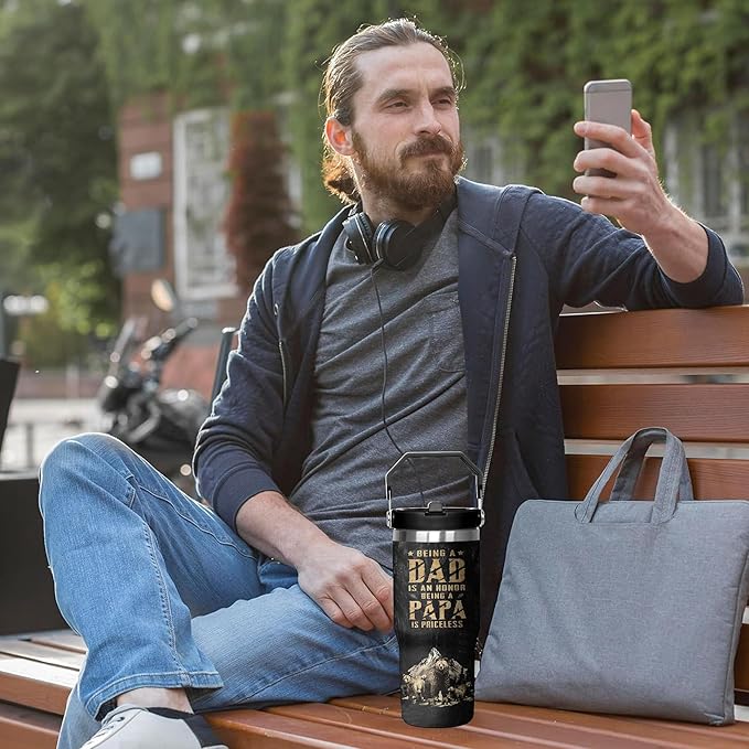 30 Oz Papa Bear Tumbler with Handle and Straw, 30 Oz Leak Proof Insulated Papa Bear Mug, Double Wall Stainless Steel Papa Bear Cup, Papa Bear Gifts for Dad and Papa Bear Fathers Day Gift