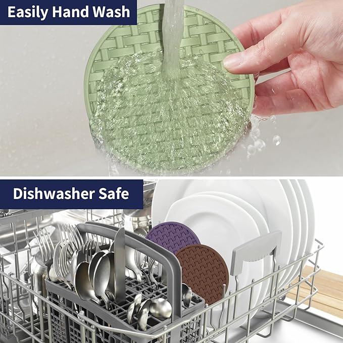 - Durable Silicone Material: Made from high-quality, BPA-free silicone that is heat-resistant, waterproof, and built to last. Protects surfaces from hot mugs, cold drinks, and spills