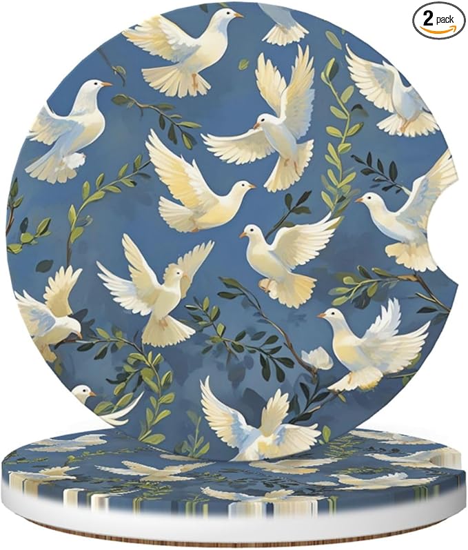 Absorbent Ceramic Car Coasters for Cup Holders, Pigeon Design 2.56" Anti Slip Universal Drink Cup Coasters for Women Men (2 Pack)