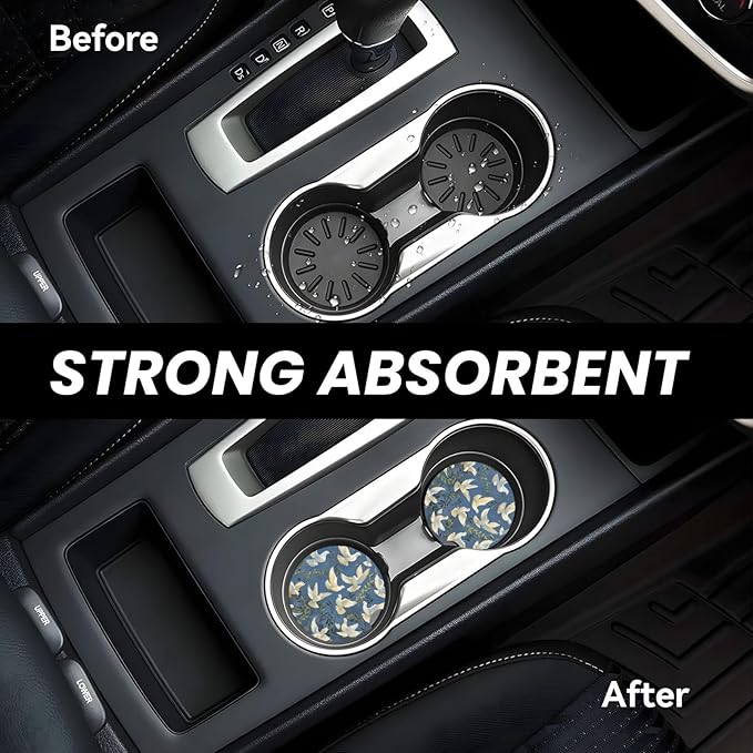 - One of the key features of these coasters is their exceptional absorbency. Crafted with advanced materials, they effectively soak up spills and condensation, keeping your cup holders clean and dry—no more worries about drips or stains in your car!